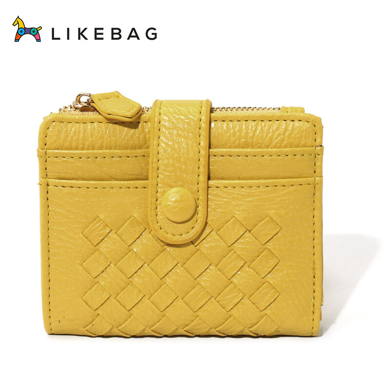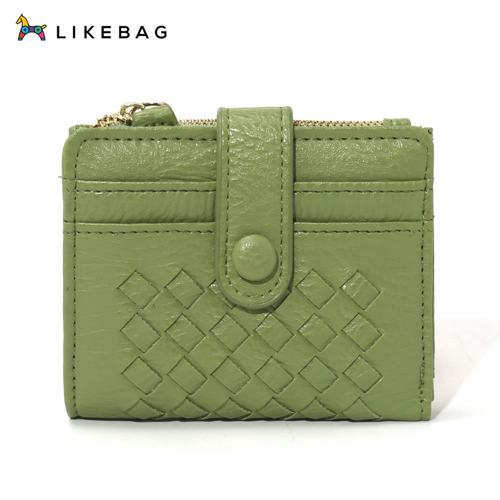 LIKEBAG 2022 Fashion Leather Weave Small Wallet Card Holder
