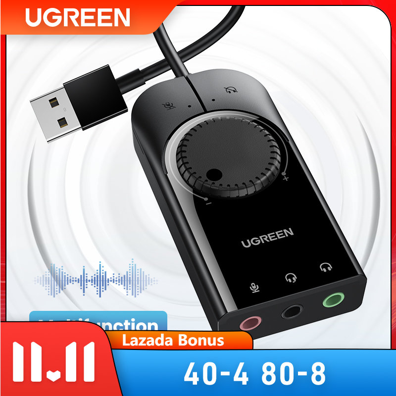 UGREEN USB Sound Card External Audio Card 3.5mm USB Adapter USB to Earphone Headphone Audio Interface for Computer PS4 Sound Card-Intl