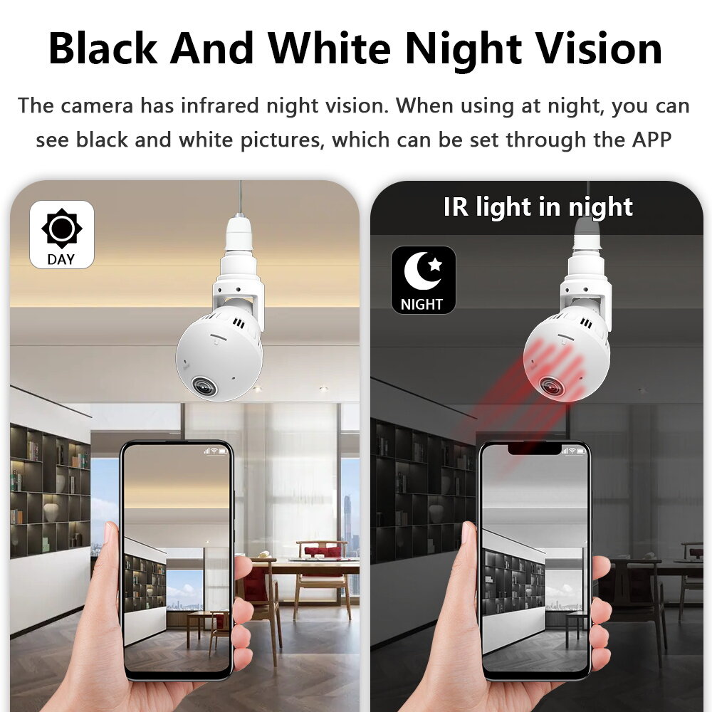Two-way voice intercom, voice alarm, picture push, TF card recording. Equipped with E27 standard lamp holder.