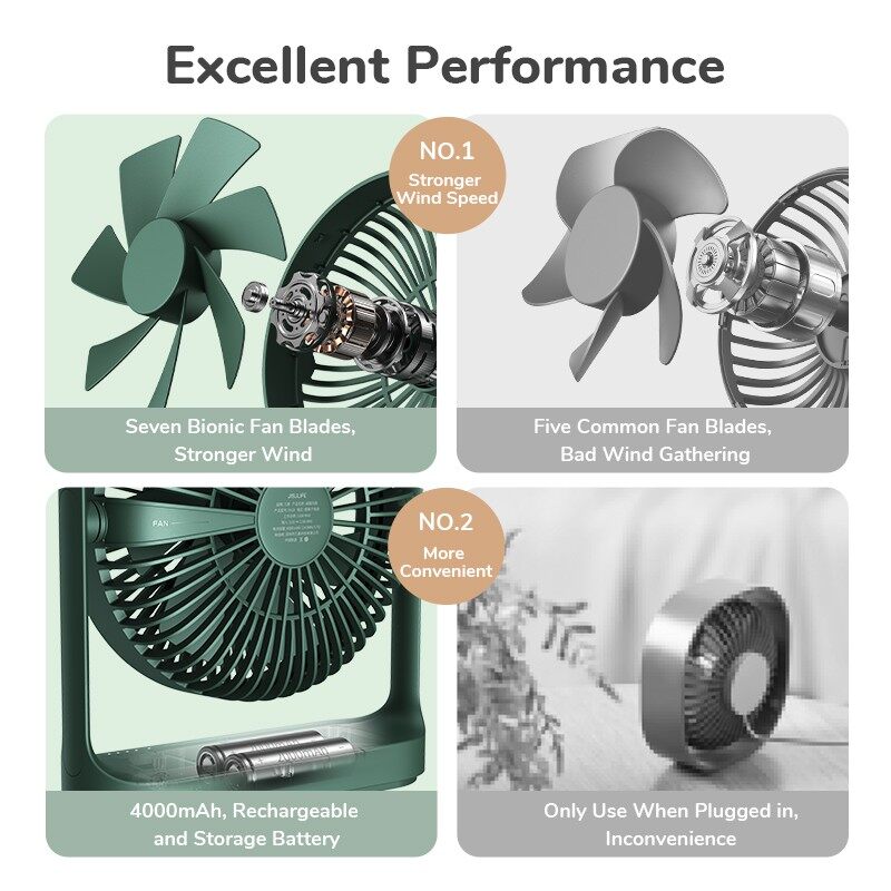 JISULIFE Upgraded desktop fan Rechargeable desk fan wireless fan 4000mAH table fan with 4 gear wind speed, 270 degree rotatable fan portable fan compact and exquisite fan produce natural wind