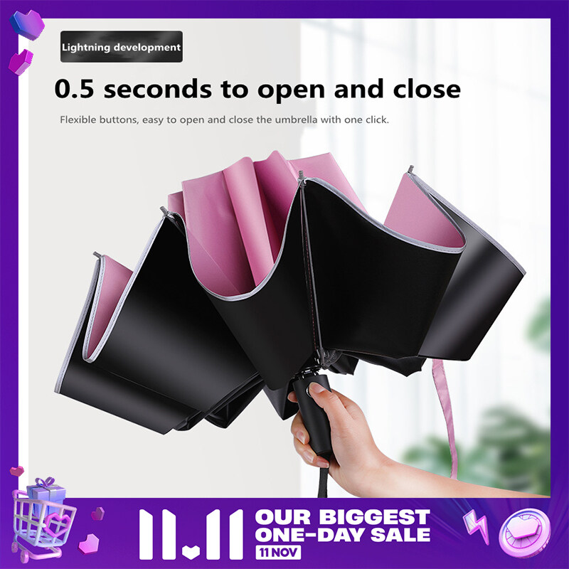 Free shipping!Inverted Fold Umbrella | Automatic | UV UPF 50+ | Reinforced aluminum alloy ribs | Comfort Grip | Fast Drying | Large (Big) | Designed in Singapore for Men and Women | Reverse unbrella |