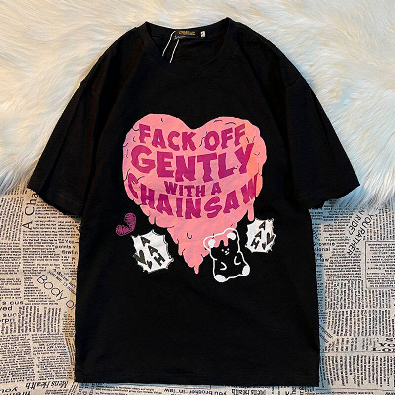 INWPLLR Fashion Trends Letter Tops Women Heart-shaped Printing T-Shirts Summer Korean Style Short Sleeve Little Bear Print Tshirt Lady