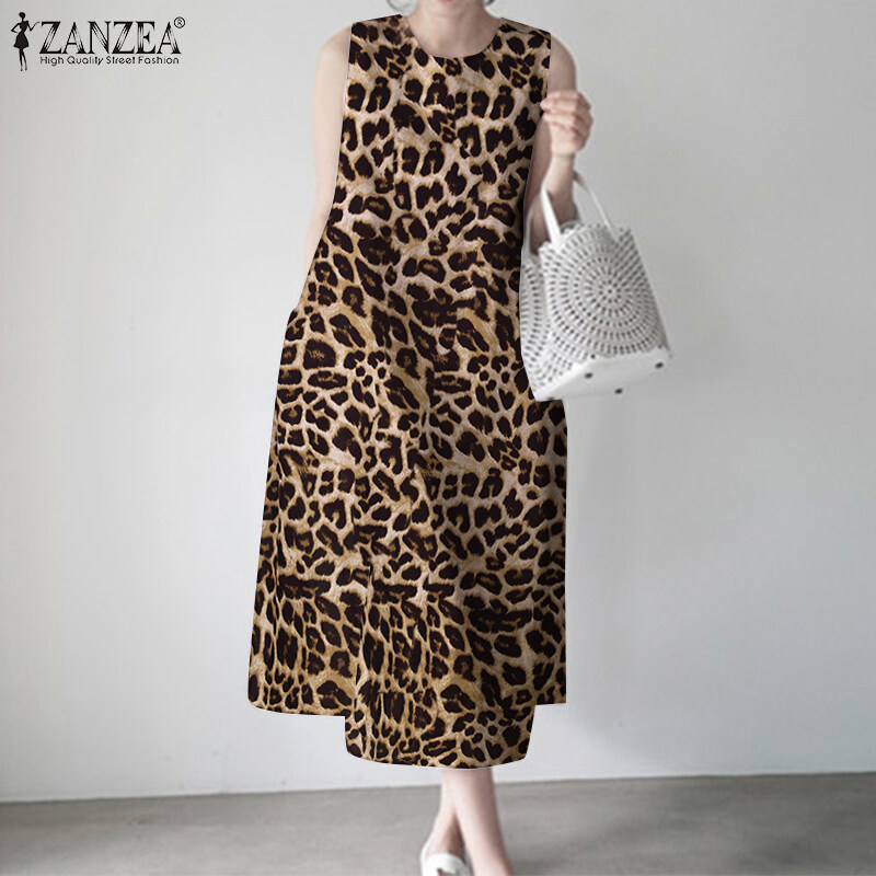 ZANZEA Womens Sleeveless Print Dress Sundress O Neck Bohemian Maxi Dress Loose Plus