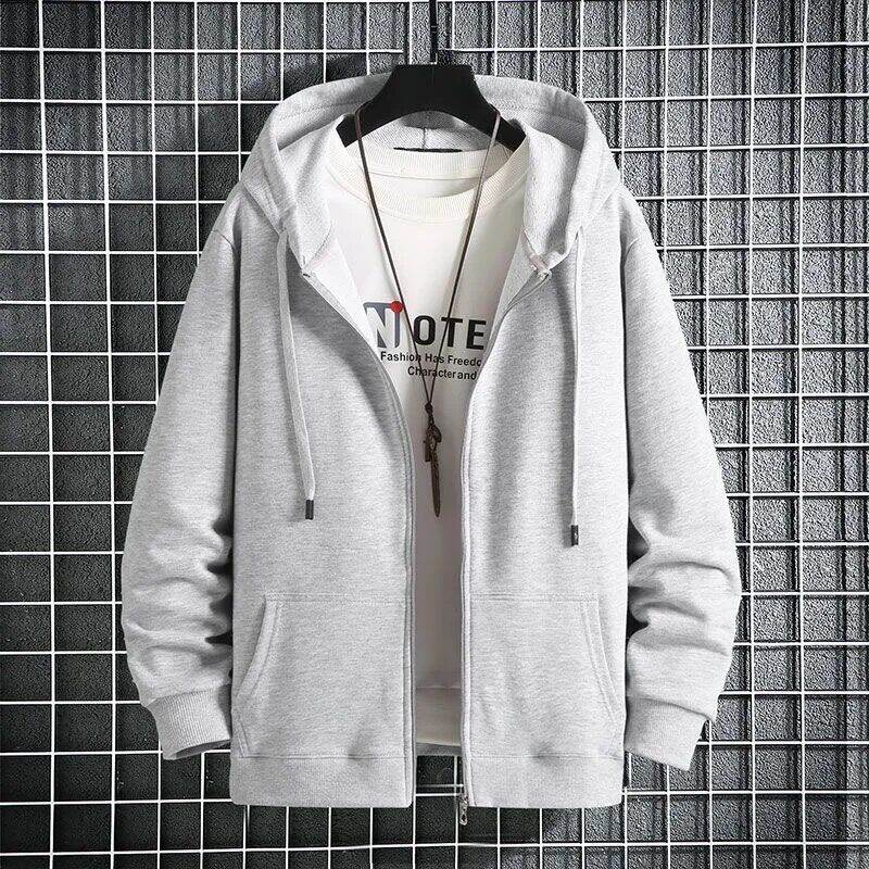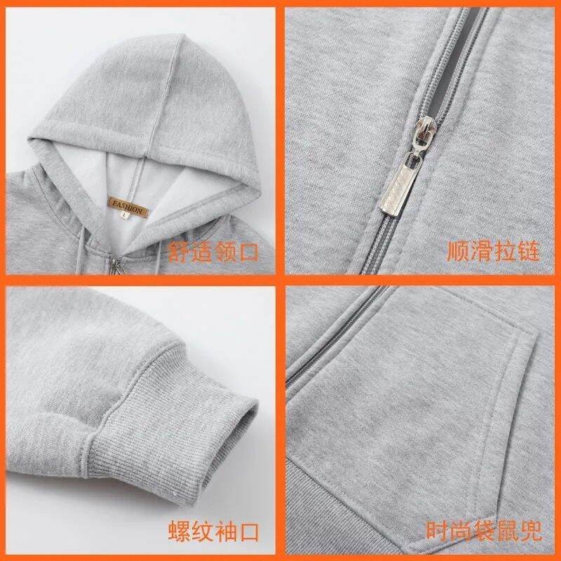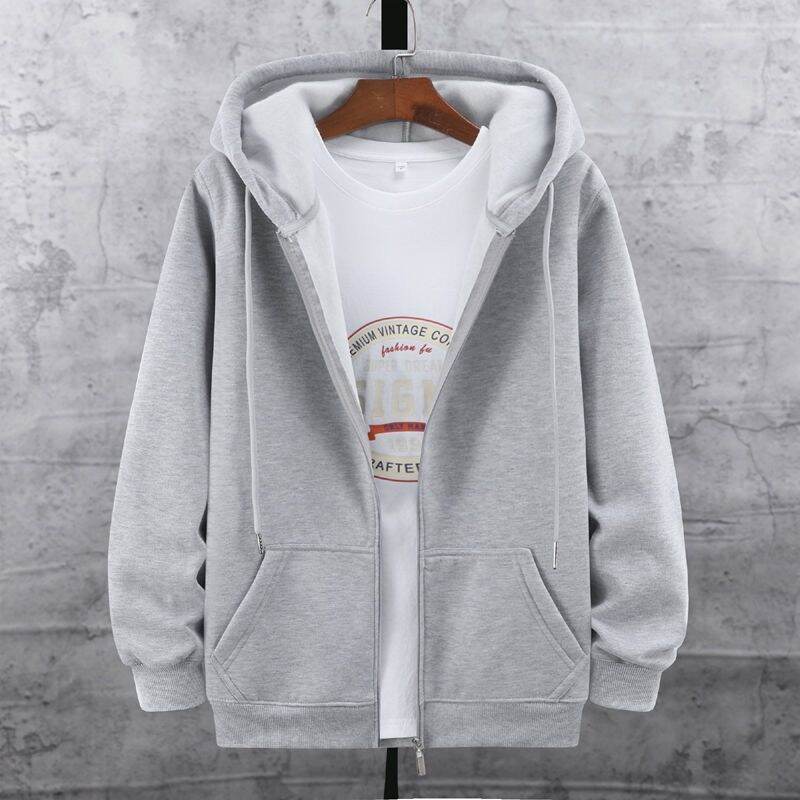 Autumn and Winter plus Size Zipper Sweater Men's Fleece-Lined Thickened Cardigan Large Loose Men's Hoodie Coat