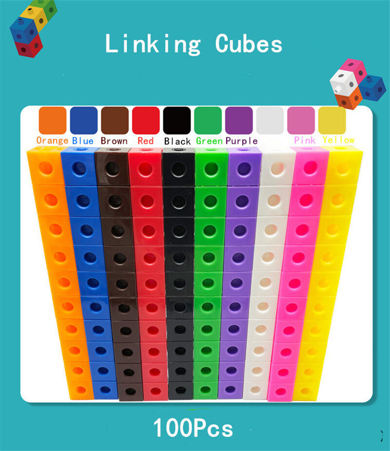 Moulty 100 Piece Linking Cubes Set for Counting, Sorting, STEM, Connecting Math Manipulatives Educational Toy for Preschool, Home, Classroom Games for Teachers, Educational Counting Toy, Math Cubes, L