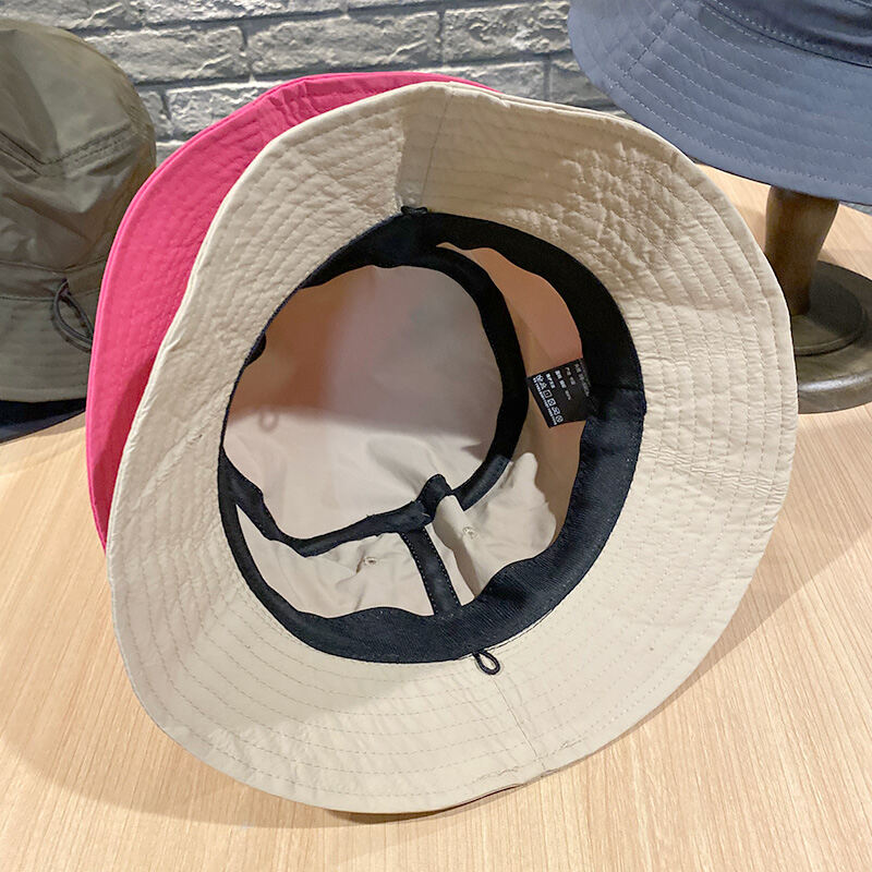 Summer Lightweight Quick-Drying Bucket Hat Men's Pure Color Japanese Outdoor Wind Proof Rope Sun Protection Hat Women's Bucket Hat Foldable Fashion