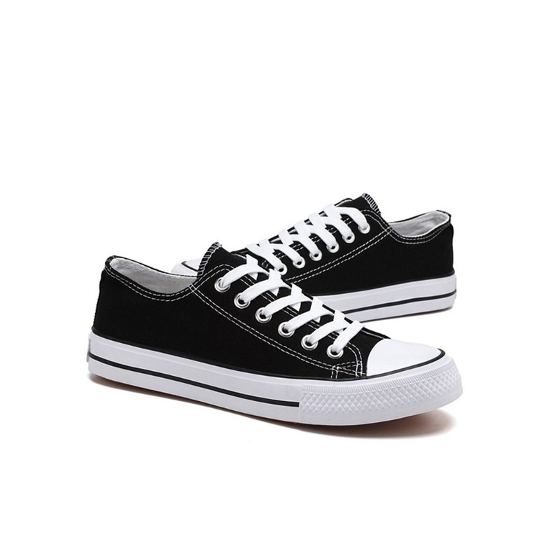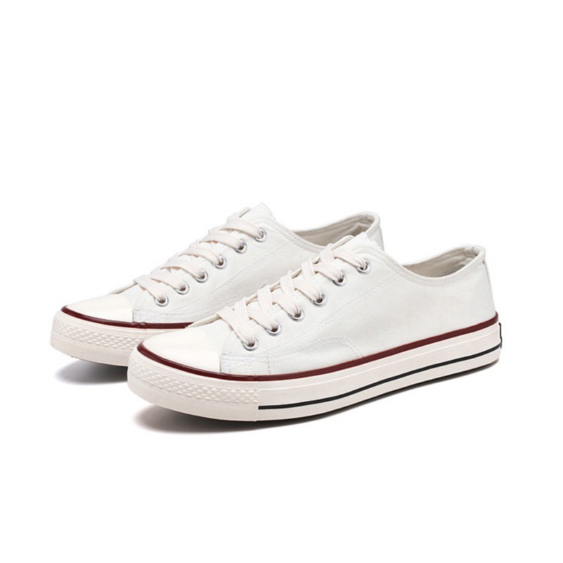 [BY SCHUMART] Unisex Back to School White/Black Canvas laced shoes. Casual Sneakers for kids and adults sizing