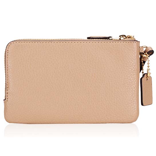 Coach Wristlet In Gift Box Small Wristlet Double Corner Zip In Pebbled Leather Taupe Nude Beige # 6649