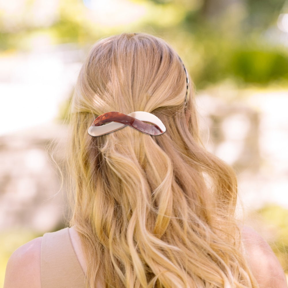 - Color: 4 colors in 2 shapes (Infinity & Wave). Please note: Due to the unique patterns in the materials used, each clip from our Handmade collection can vary from the one displayed in the product photo. Hence once you ordered, you are considered as accpet the slight color differences.