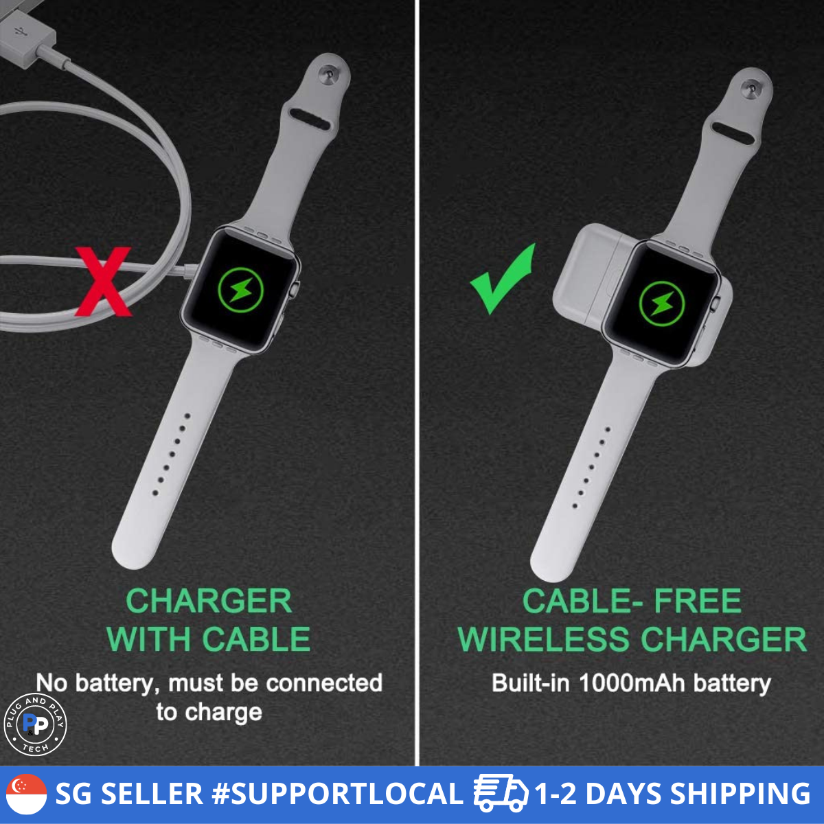 ✅ SUPER CONVENIENT: Introducing a compact, portable power bank in two configurations: 1000mAh / 4000mAh Li-Ion battery. With the power to add up to 63 hours of battery life, you can stay charged for days without needing to bring a wall charger. Perfect for travel and on-the-go, this Apple Watch power bank allows you to track your fitness goals, use Apple Pay, and receive notifications from anywhere.