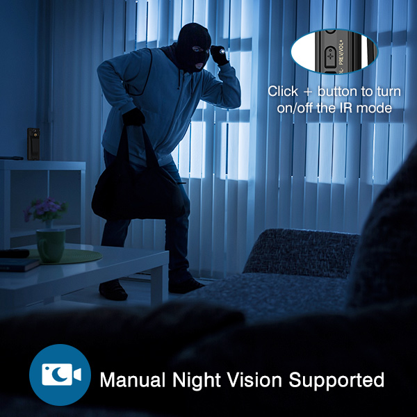 • 1080P/40M resolution are suitable for the day and night using, short press the + Button could get a night vision mode.