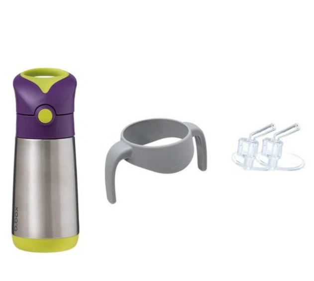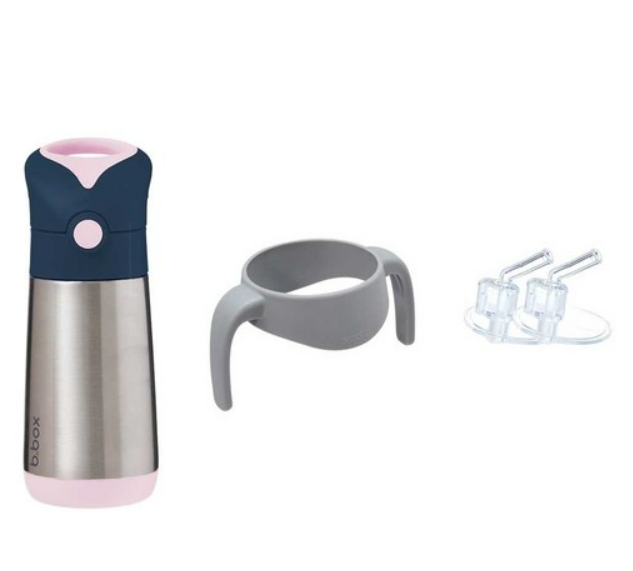 Clean modern design and big kid aesthetic. Available in six fab b.box colours. Kids love our easy drinking silicone straw top. Parents love no leaks in the bag (when the lid is closed). Replacement straw packs available, sold separately. When using to keep liquids warm - for best performance fill the stainless steel base with hot water for a few minutes to warm it before pouring water out - and filling with warm liquids.
