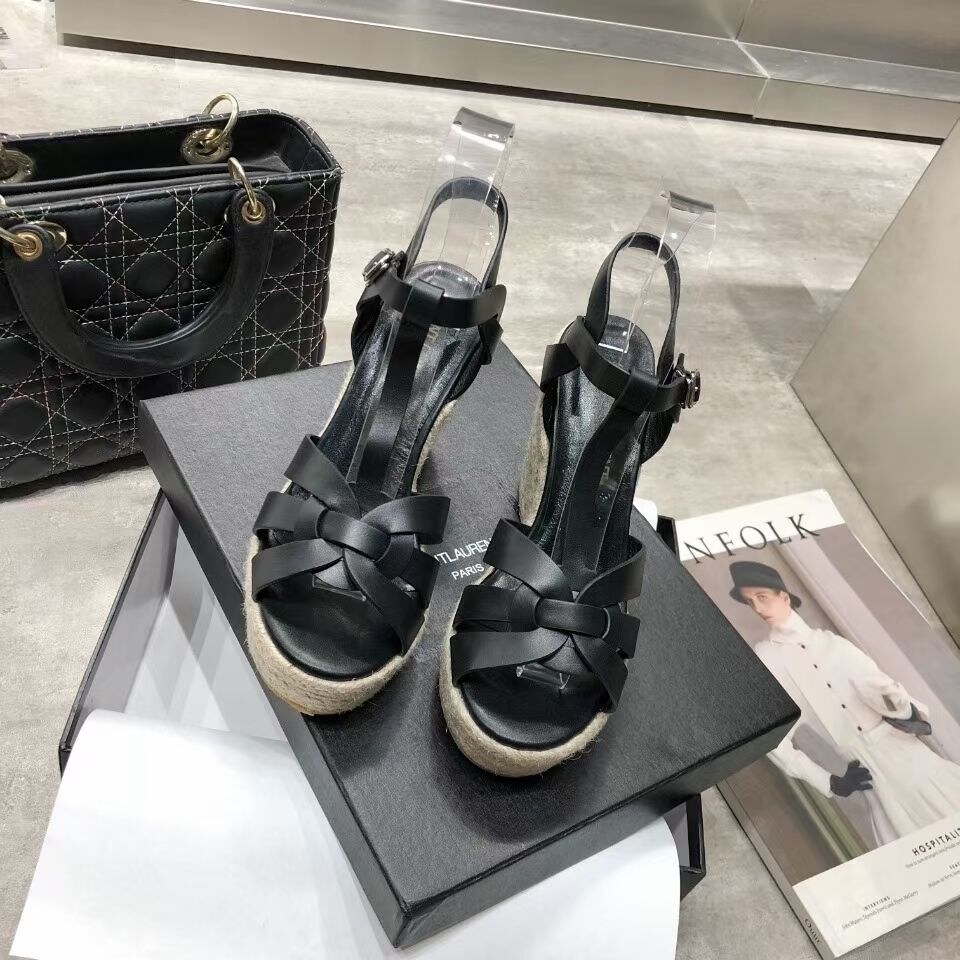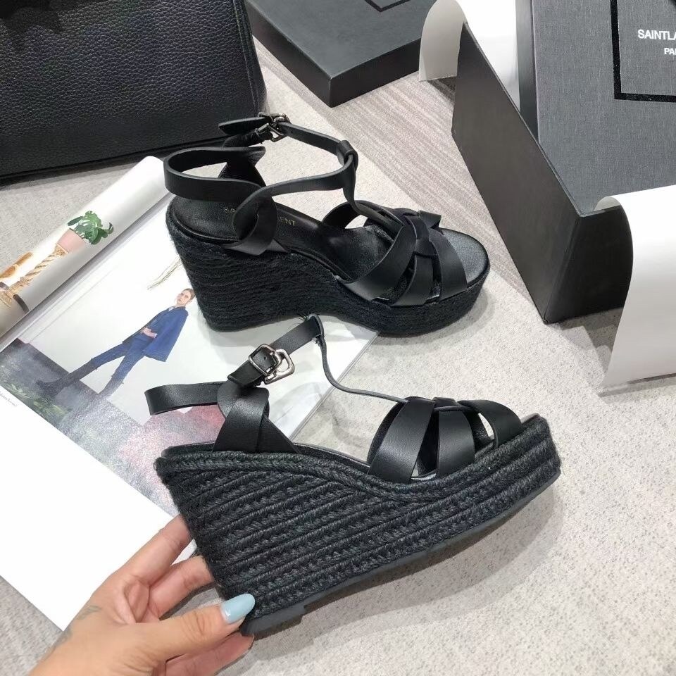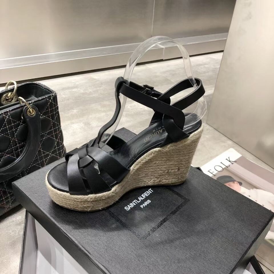 Women's genuine leather wedge sandals 2022 summer new fashion all-match comfortable casual refreshing thick bottom wedge heel sandals 9CM