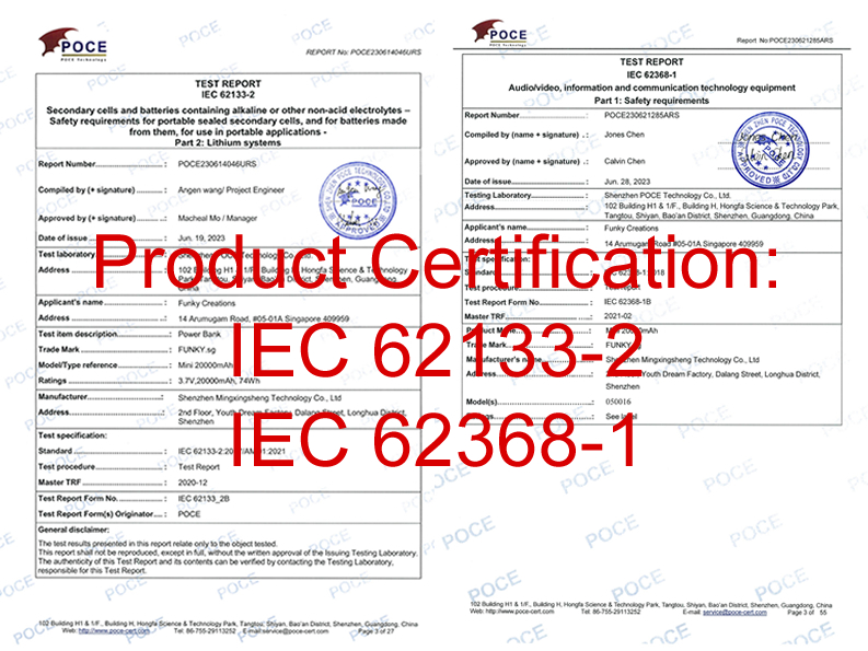 • IEC 62133 and IEC 62368 Certified