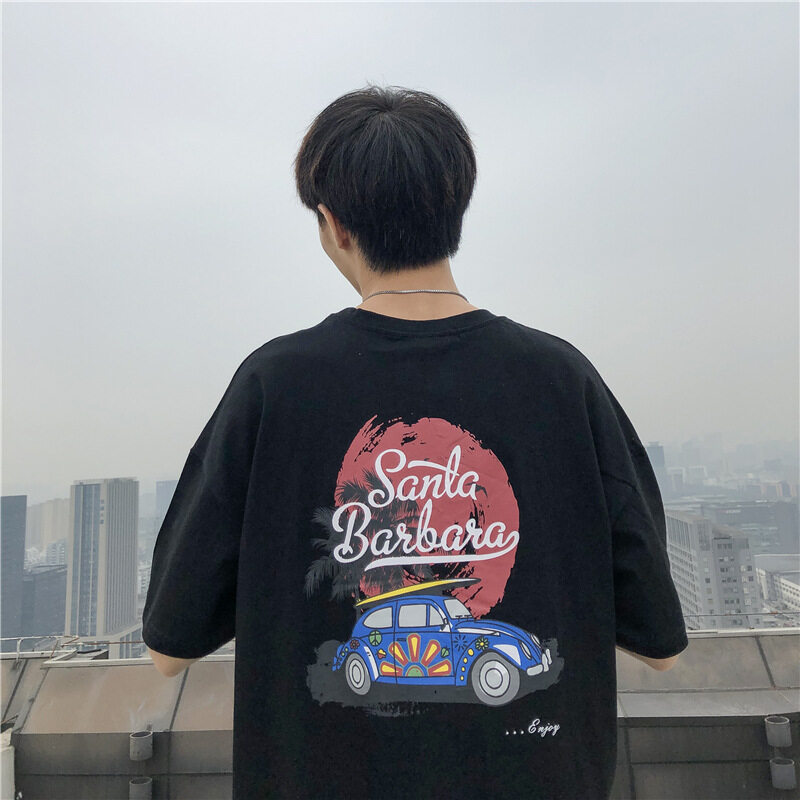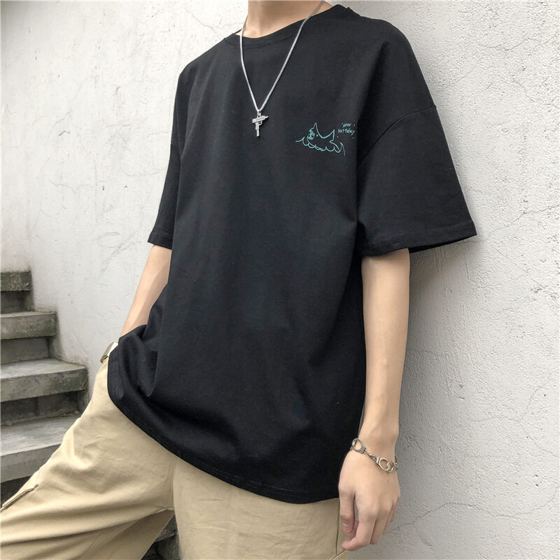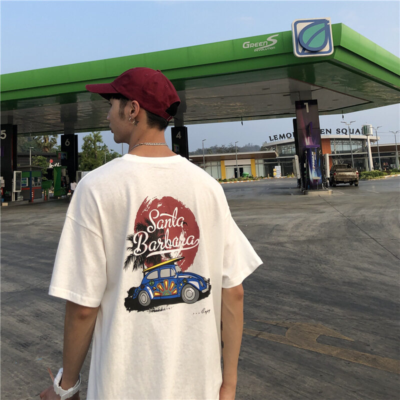 t shirt Men Oversize Korean Street Style Letter Print Casual Fashion Tops