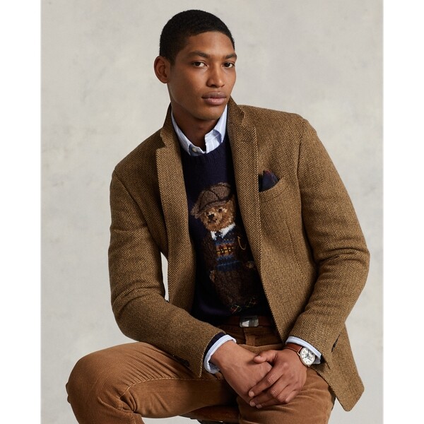 This sweater utilizes 25 types of yarn to display our beloved mascot wearing a heritage-inspired suit, a Fair Isle sweater, and argyle socks.