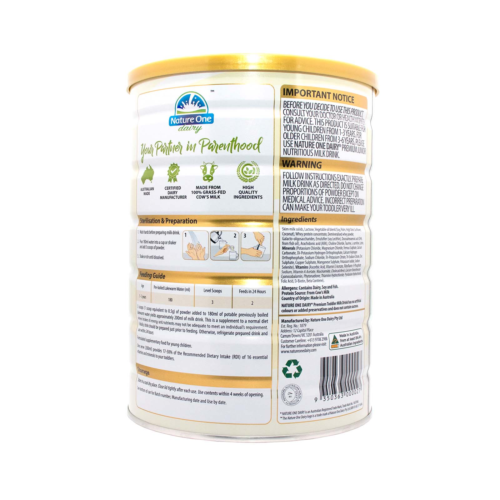 Nature One Dairy Premium Toddler Nutritious Milk Drink Step 3 900g