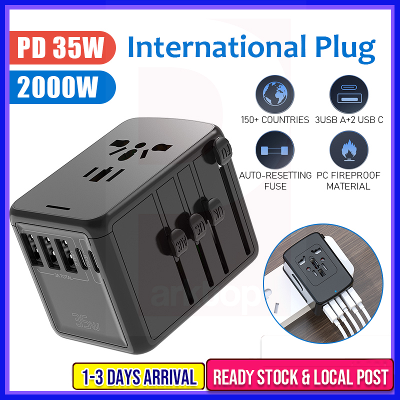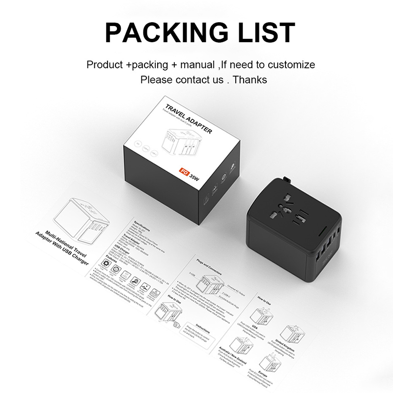 Universal Travel Adapter All in One International Worldwide Wall Power Travel Adaptor with 4 USB Ports + 1 Type C Port Fast Wall Charger Plug