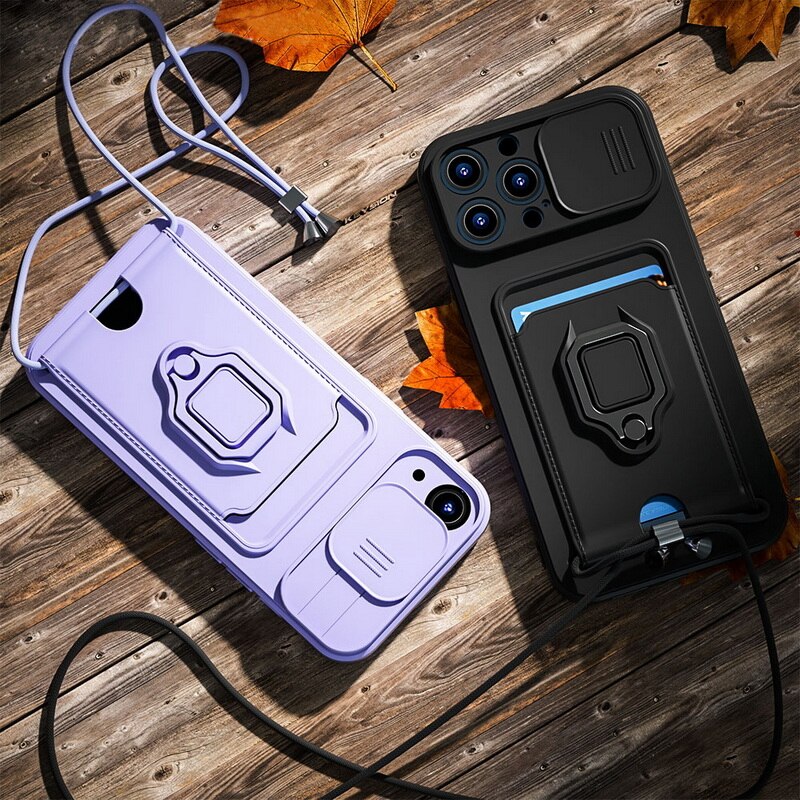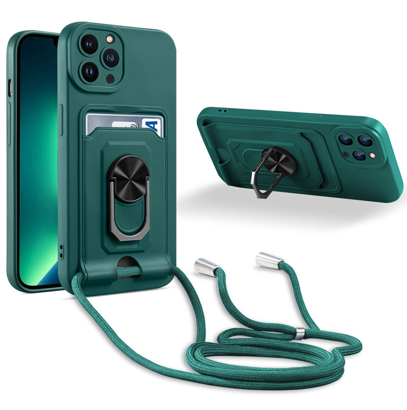 For Apple iPhone 15 14 13 11 12 Pro Max Plus mini Phone Case, Crossbody Necklace Strap Lanyard Magnetic Ring Card Slots Holder Cover