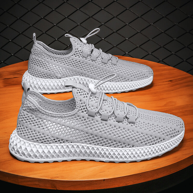 Mesh Surface Shoes Men's Summer Breathable Thin Mesh Surface Hollowed Large Mesh Men's Shoes Casual Running Black Flyknit Sneaker