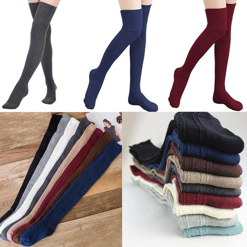 Yingbao Korean style Long Socks Thick Women Thigh High Over The Knee Winter warm Cotton knitted ladies Casual Boot Stockings Leg Warmers White Black Maroon Dark Blue Grey