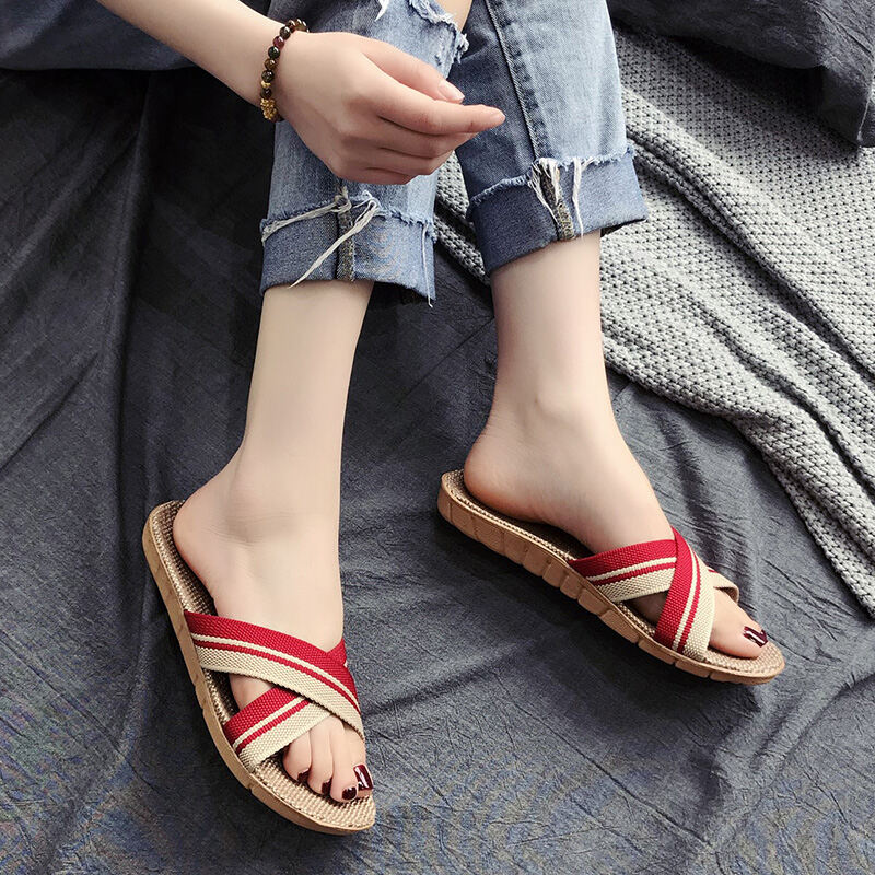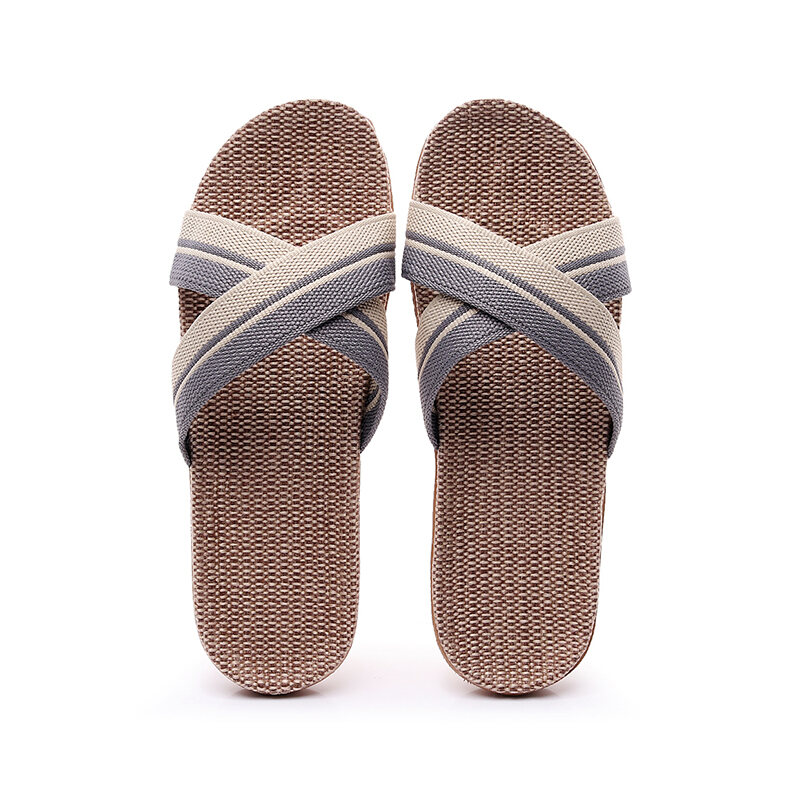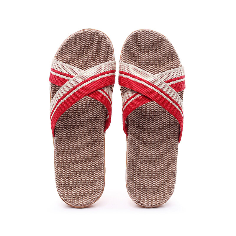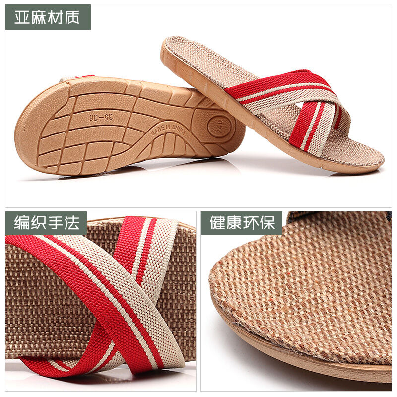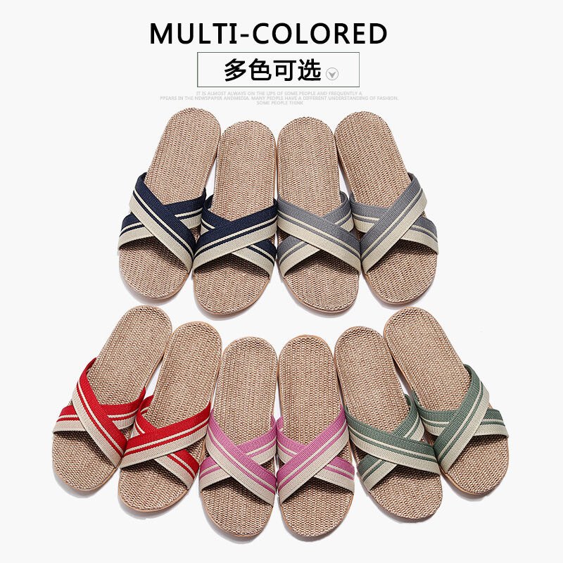 Linen Slippers Home Couple Indoor Slippers Wooden Floor Cotton Linen Home Non-Slip Thick Bottom Summer Slippers Men and Women