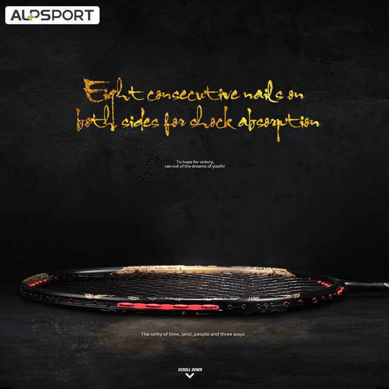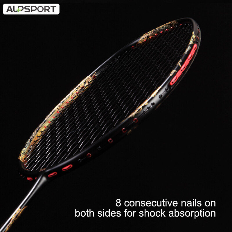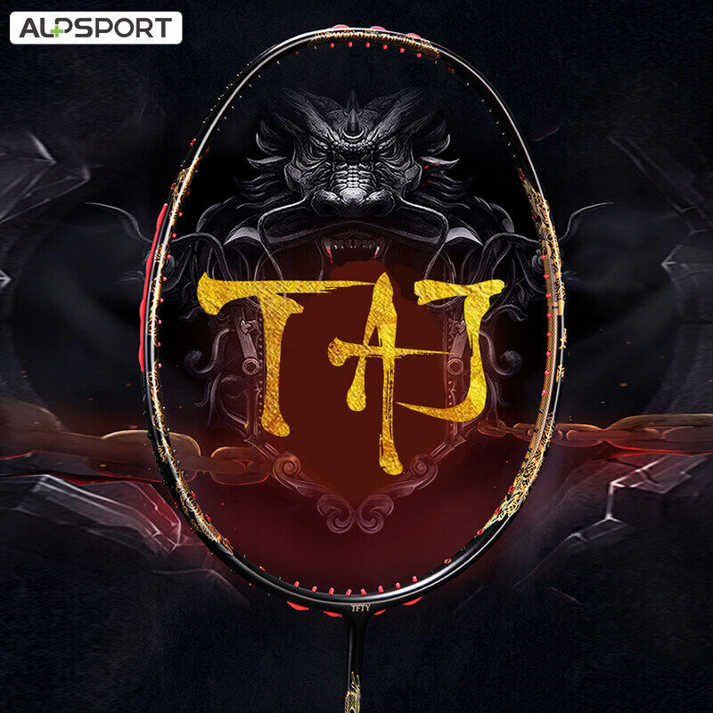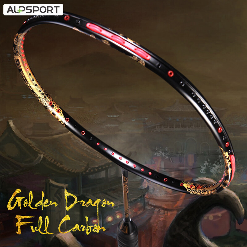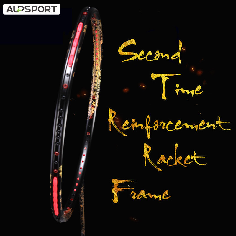 ALP TAJ 4U 35Lbs 7mm G5 Powerful Excalibur Golden Dragon Badminton Racket With Secondary Reinforced Full Carbon Fiber Reket Pro Offensive Single Training Raket With Gift Box