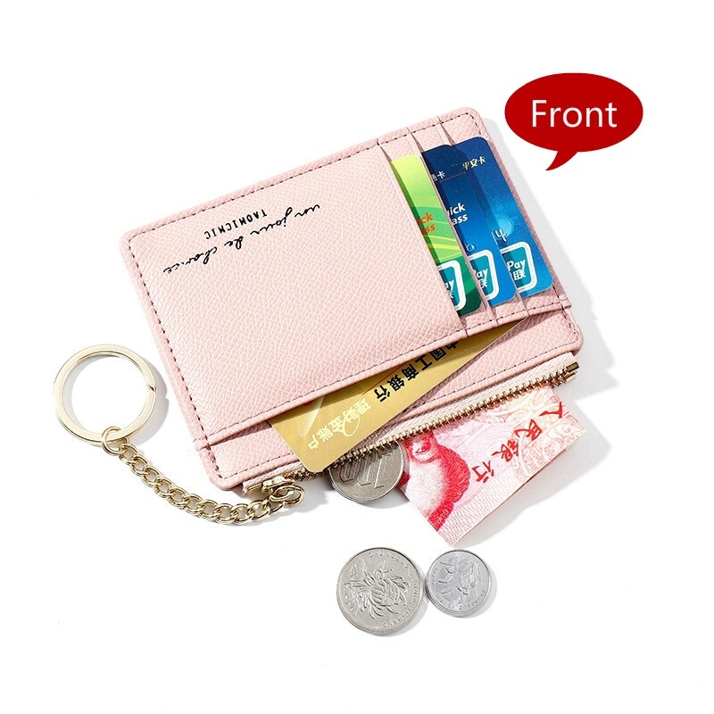 MINGKE Card Holder Wallet Coin Purse for Women 8 Cards Zipper Keychain Mini Simple Fashion