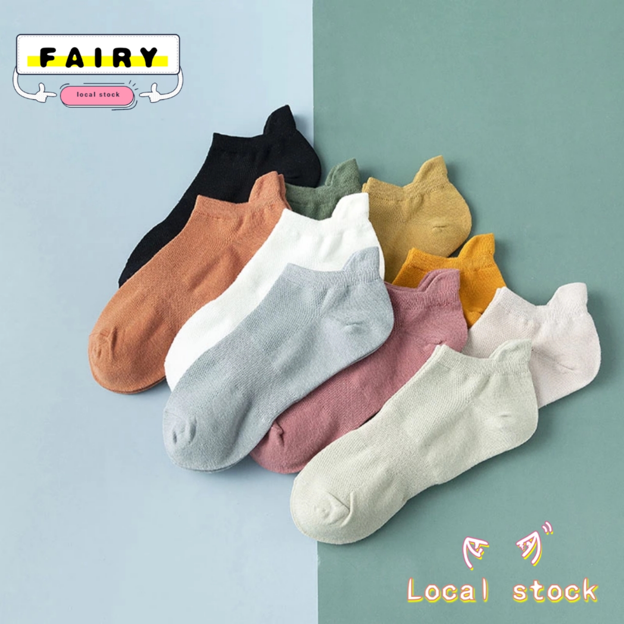 (SG Seller) Women Funny Ankle Socks Embroidered Animal Pug Cute Socks Kawaii Cartoon Candy Color Breathable Cotton Boat Socks