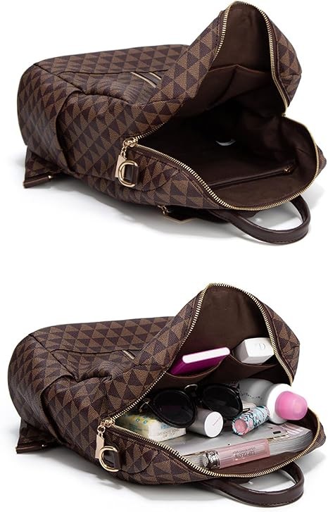 Women's Backpack Wallet PU Leather Travel Satchel Handbag Convertible Design Bag with Wallet, Brown, Travel Backpack